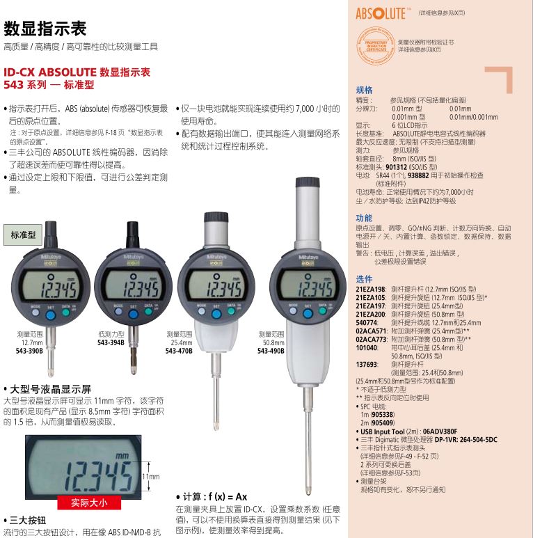 | 0.001mm | — | 543-490B | 50.8mm | 0.005mm | 2.3N 以下 | — |