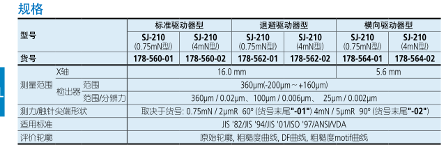 三豐粗糙度儀SJ-210 310便攜式規(guī)格參數(shù)Specs