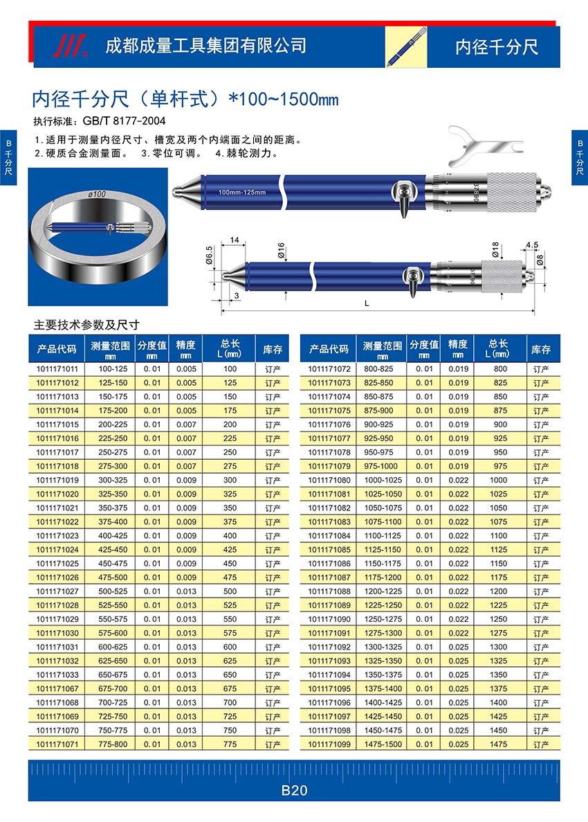 成量內(nèi)徑千分尺(單桿式1375-1400mm1011171095規(guī)格參數(shù)Specs