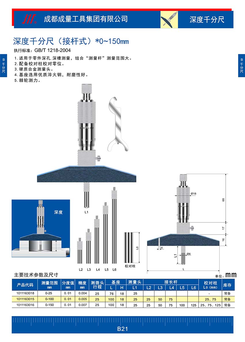適用于零件深孔,深槽測量, 組合“ 測量桿” 測量范圍大。配備校對柱校對零位。硬質(zhì)合金測量頭?;x用優(yōu)質(zhì)淬火鋼, 耐磨性好。棘輪測力。