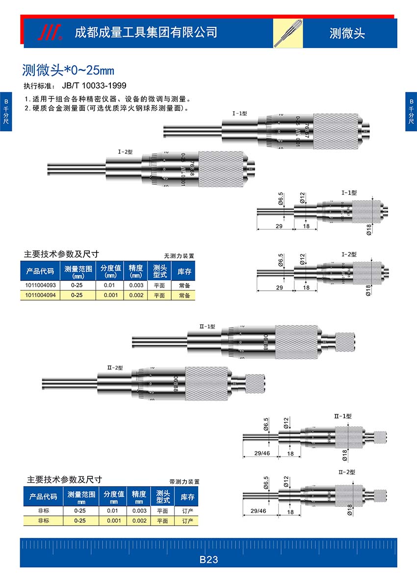 成量測微頭0-25mm1011004094規(guī)格參數(shù)Specs