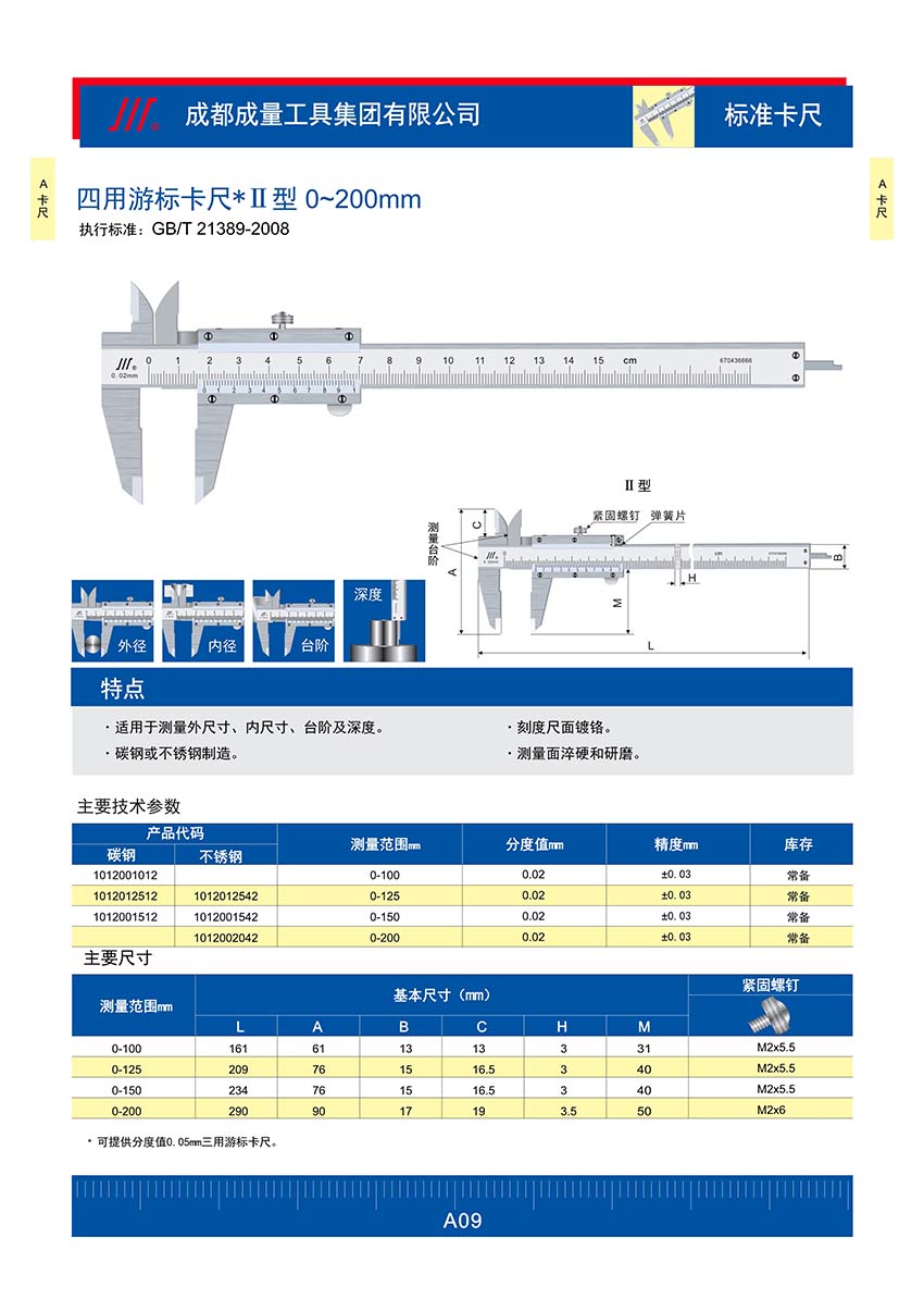 適用于測量外尺寸、內(nèi)尺寸、臺階及深度。碳鋼或不銹鋼制造。