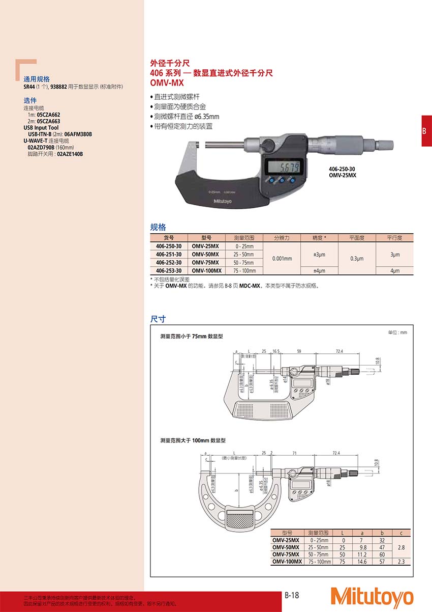 外徑千分尺75 - 100mm406-253-30規(guī)格參數(shù)Specs