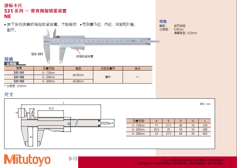 | 531-101 | 0--150mm | ±0.05mm | 薄片 | / |