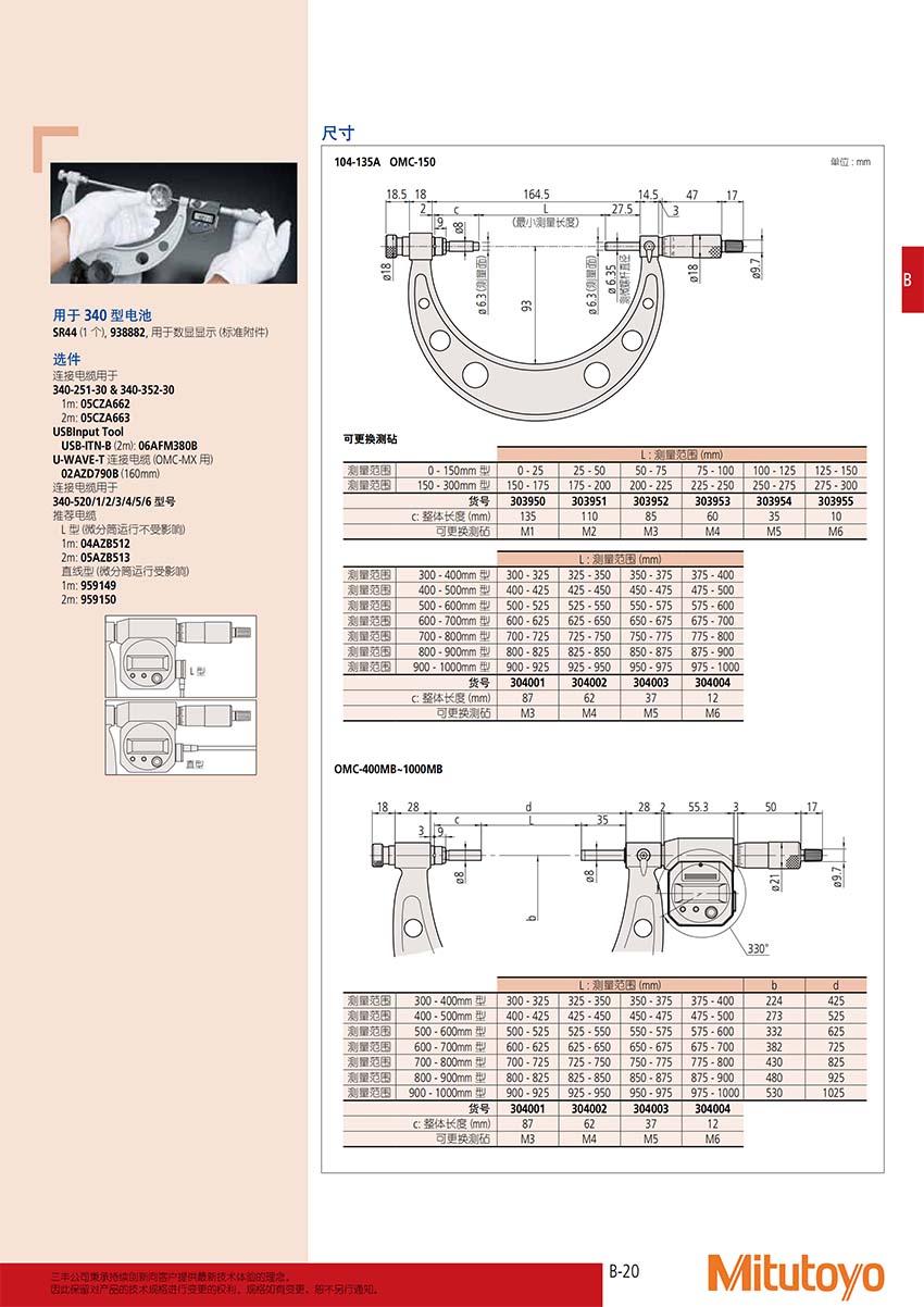 外徑千分尺0 - 150mm104-135A規(guī)格參數(shù)Specs