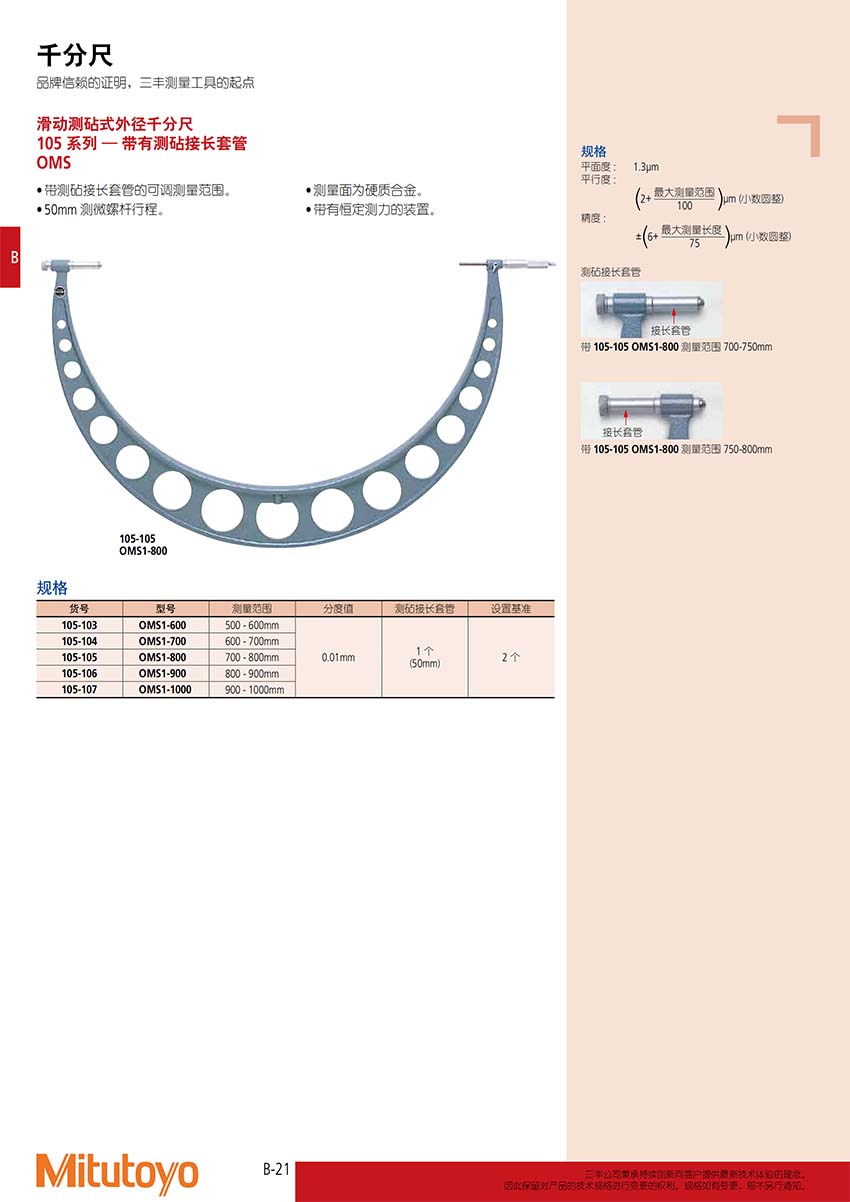 滑動測砧式外徑千分尺800 - 900mm105-106規(guī)格參數(shù)Specs