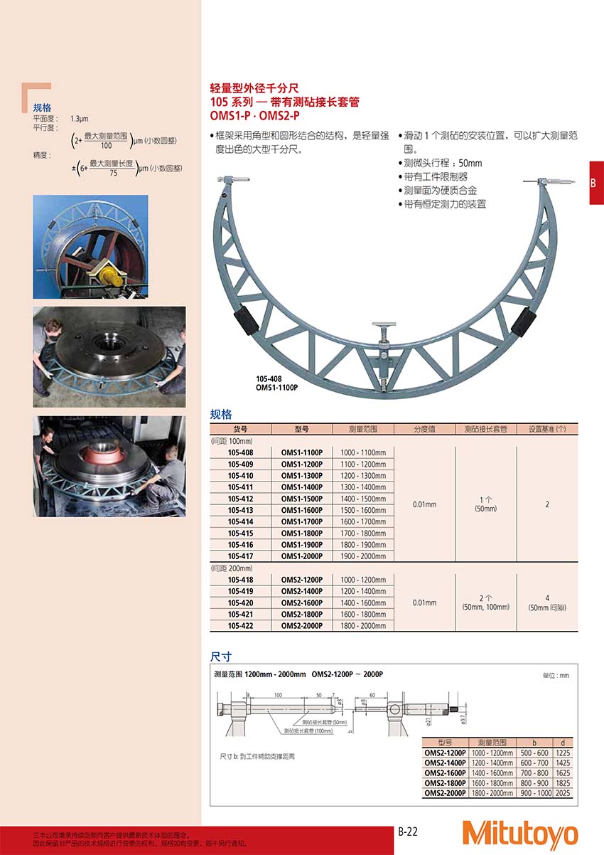 輕量型外徑千分尺1200 - 1400mm105-419規(guī)格參數(shù)Specs
