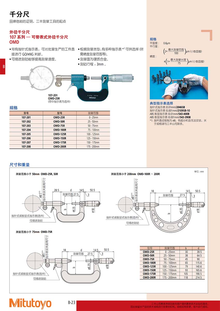 外徑千分尺 107 系列25 - 50mm107-202規(guī)格參數(shù)Specs