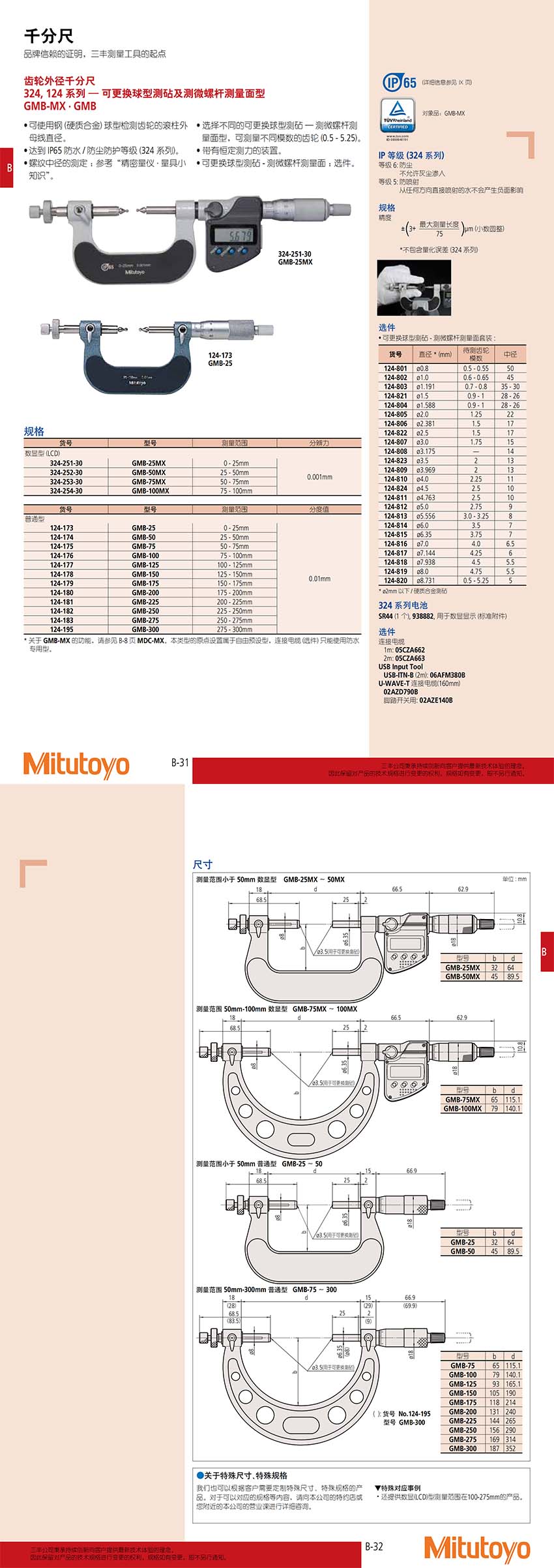 齒輪外徑千分尺0 - 25mm324-251-30規(guī)格參數(shù)Specs