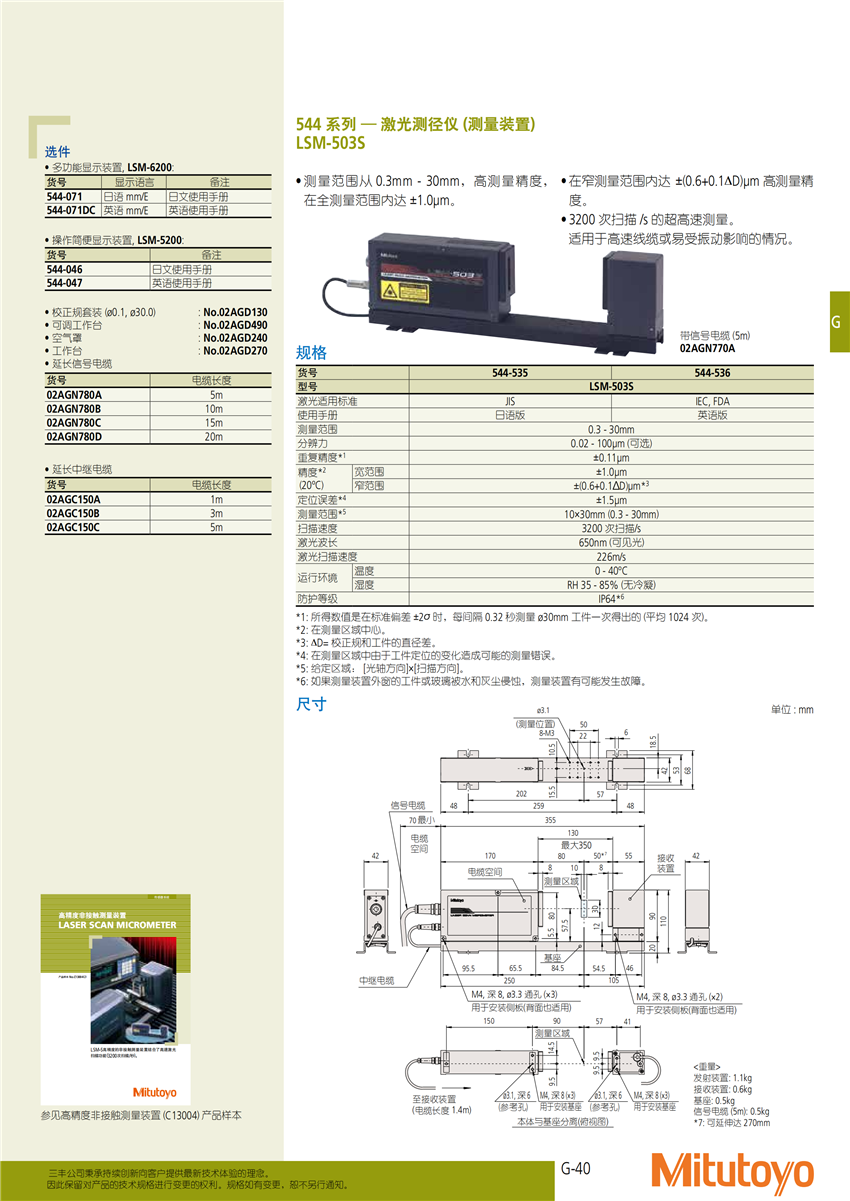 激光測(cè)徑儀0.3 - 30mm544-536規(guī)格參數(shù)Specs