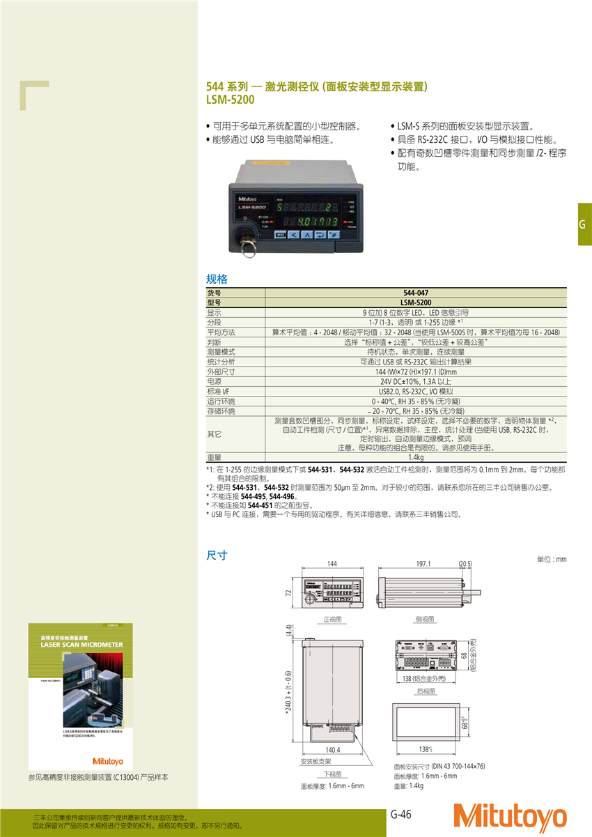 激光測(cè)徑儀544-047規(guī)格參數(shù)Specs