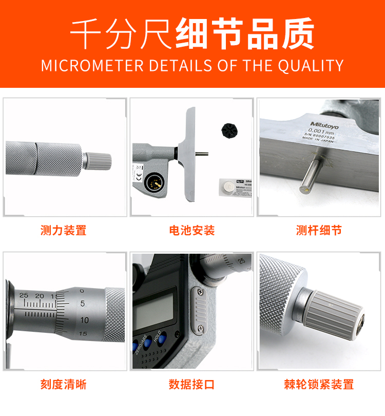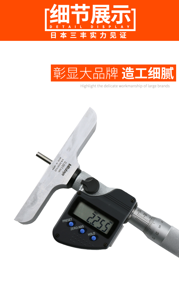 三豐深度數(shù)顯電子千分尺329-251-10 0--300mm深度尺0.001mm包裝清單Detail